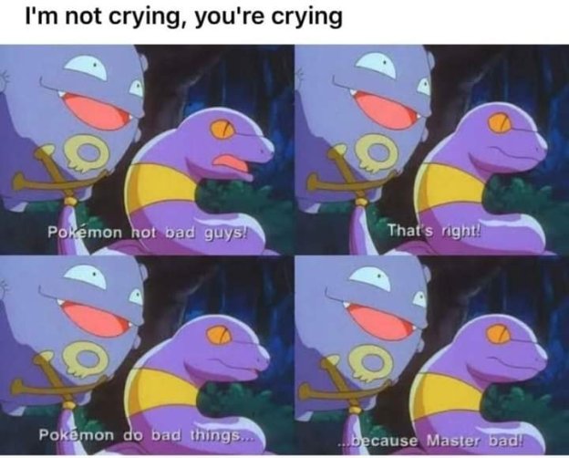 Shakespeare wrote in Hamlet (Act II, Scene II): “…there is nothing either good or bad, but thinking makes it so”. Centuries later, the creators of the Pokémon: Indigo League anime series made an episode titled, “Island of the Giant Pokémon”. In this, Team Rocket’s Pokémon Ekans and Koffing defend their actions against Ash Ketchum’s partners, claiming that they are not bad–rather, their human trainers are.
